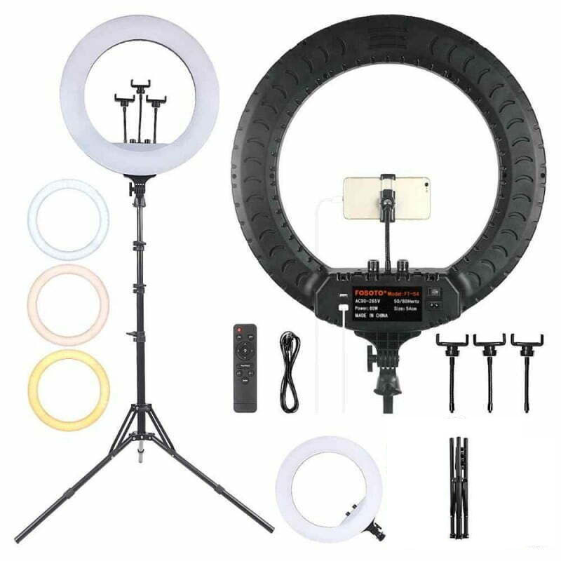 Για επαγγελματική ή ερασιτεχνική χρήση αυτό το ring light έχει διάμετρο 53 εκατοστών και διαθέτει 3 ξεχωριστές βάσεις κινητού για πολλαπλές λήψεις.